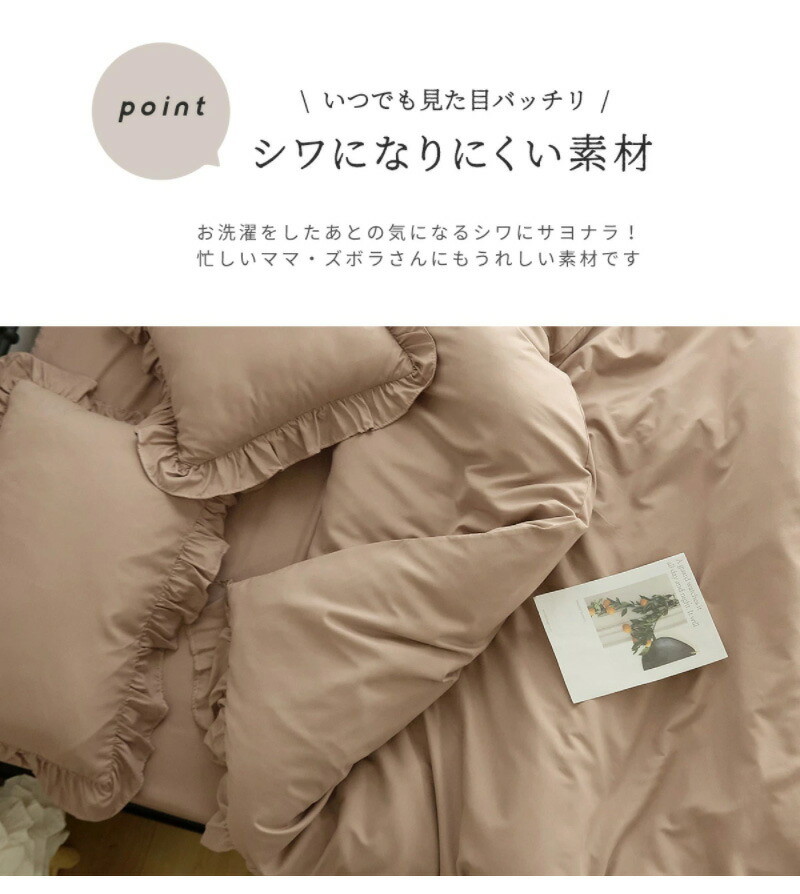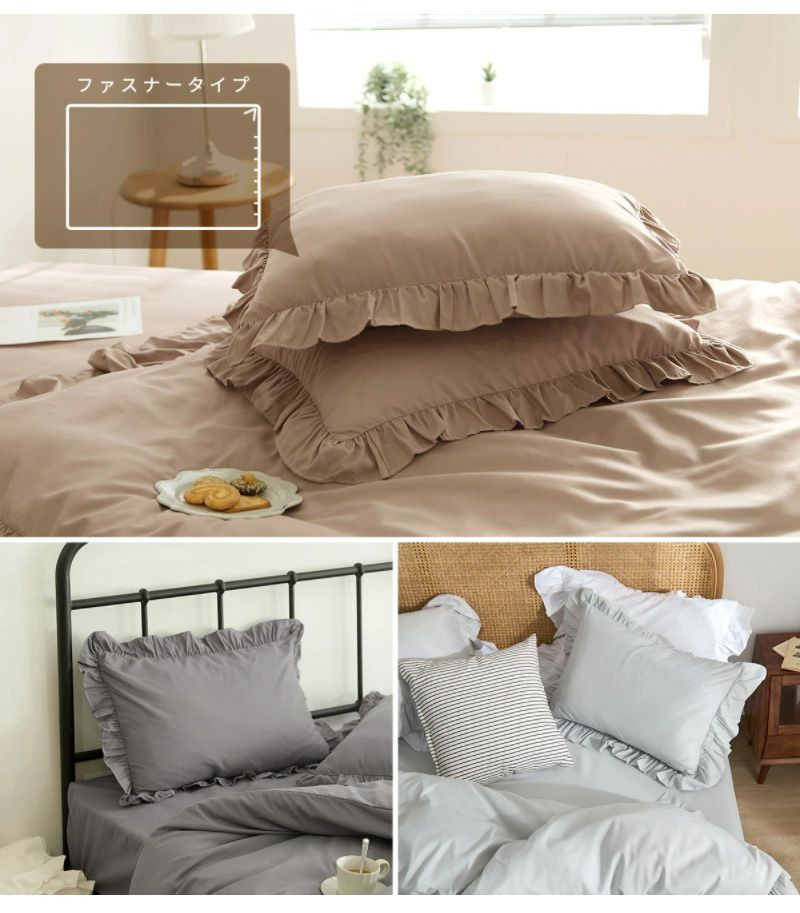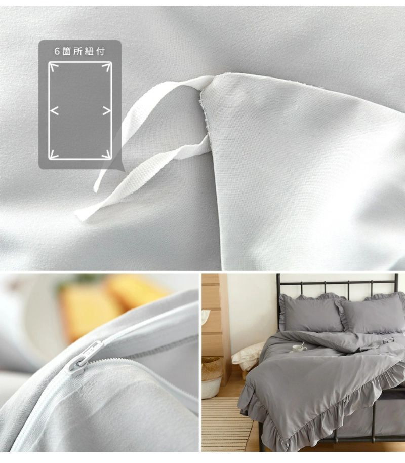 布団カバー 3点セット フリル付き シングル 洗える ウォッシャブル 速乾 シワになりにくい おしゃれ ピーチスキン ダークグレー(15535-0001)