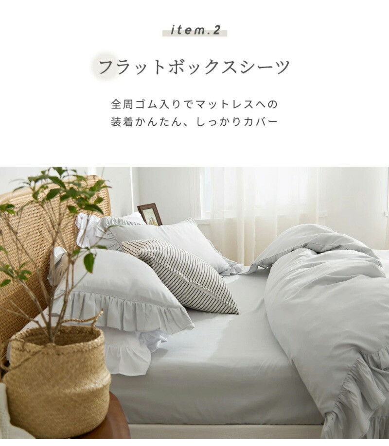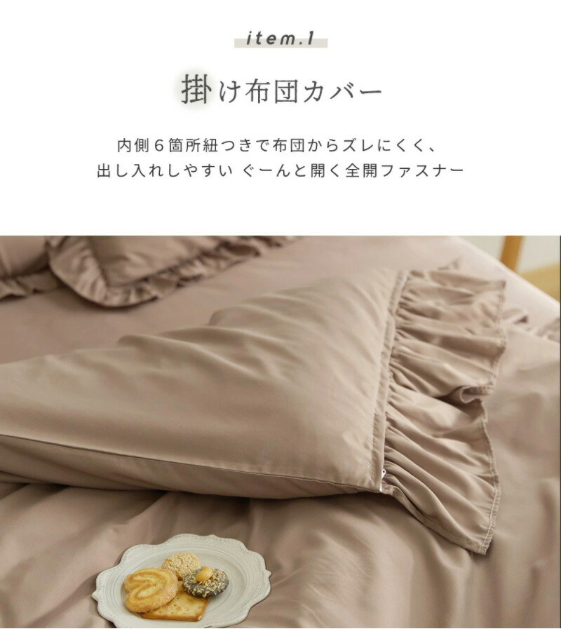 布団カバー 3点セット フリル付き セミダブル フラットボックスシーツ タイプ おしゃれ ピーチスキン オールシーズン ベージュ(15635-0017)