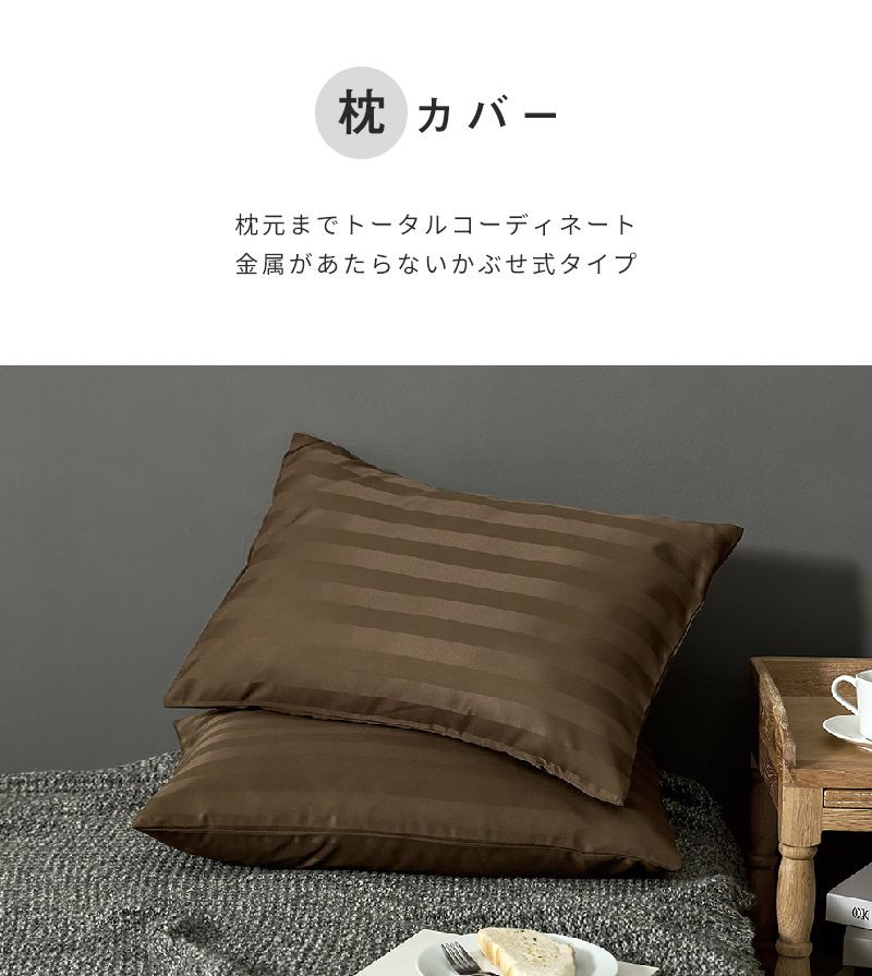枕カバー ホテル風 43cm×63cm サテンストライプ ピローケース まくら 光沢 ピーチスキン加工 洗える グレー(23351-0001)