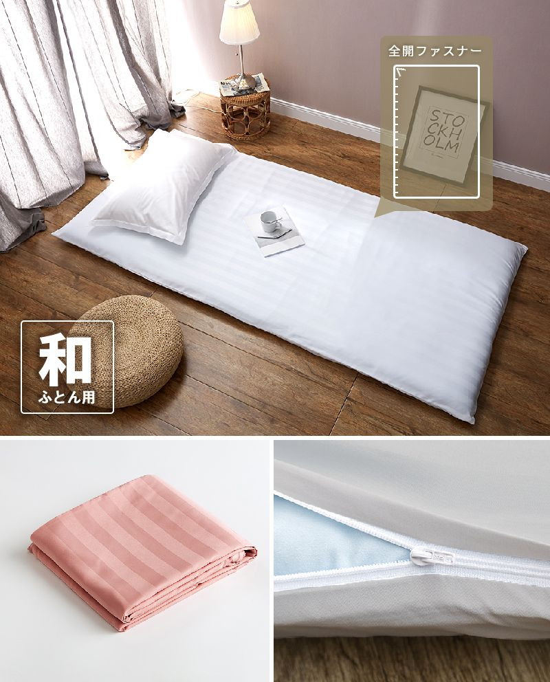 敷き布団カバー ホテル風 ダブルサイズ 145cm×215cm サテンストライプ 敷カバー シングルロング 光沢 ピンク(23732-0002)