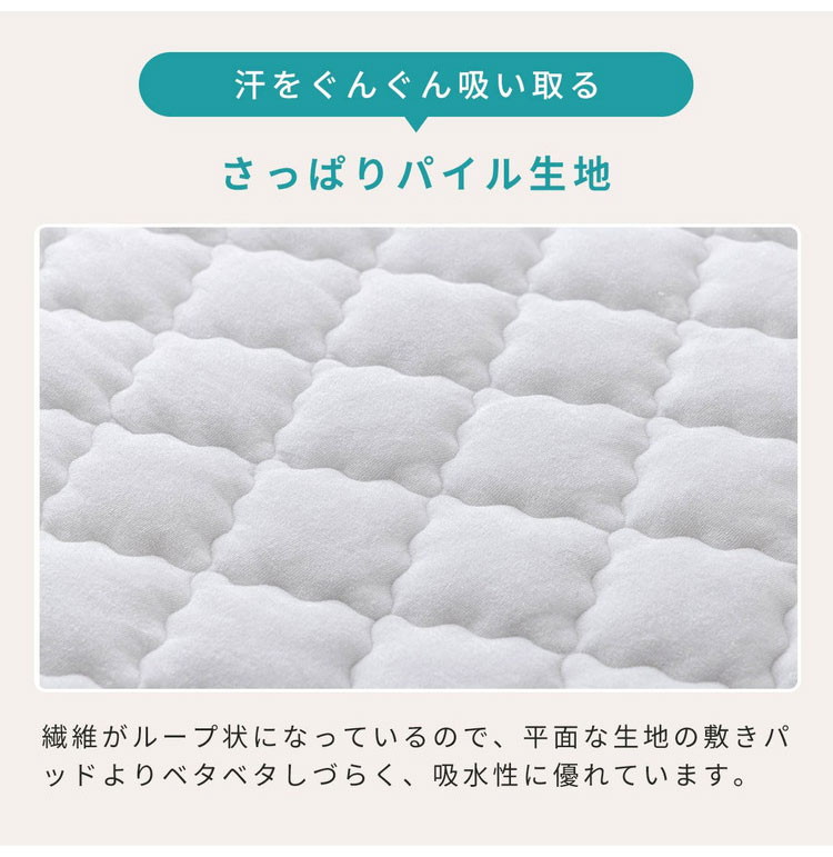 平面な生地の敷きパッドよりベタベタしづらく、