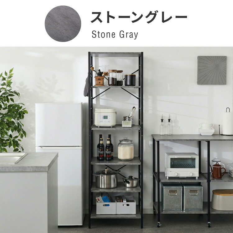 キッチンラック 幅52cm 6段 VOID STACK series レンジ台 レンジボード レンジラック ストーングレー