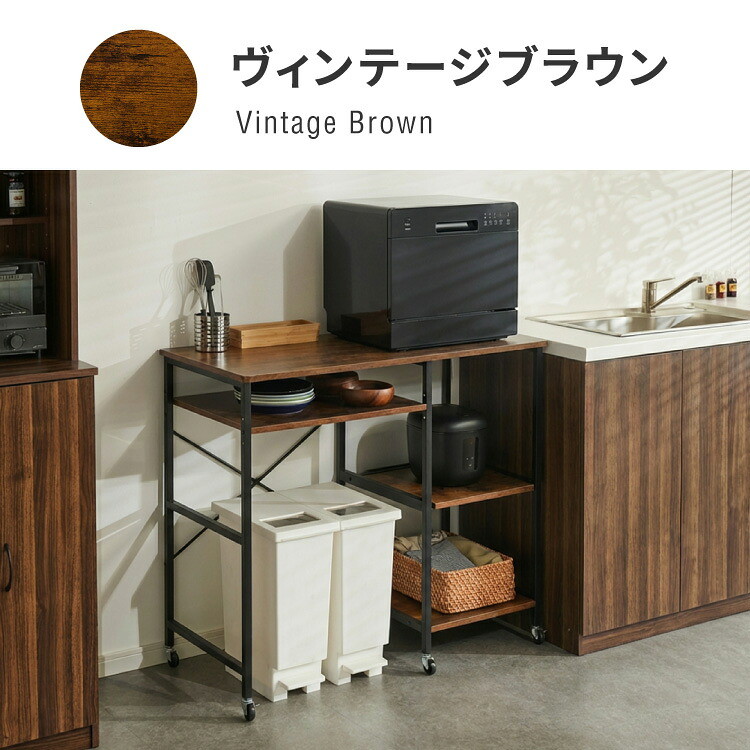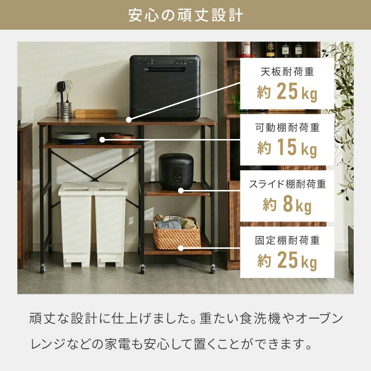オーブンレンジ対応 キャスター付きキッチンラック W100