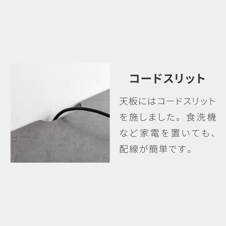 ・天板はコード穴カットを施しているので、コードを通せます。