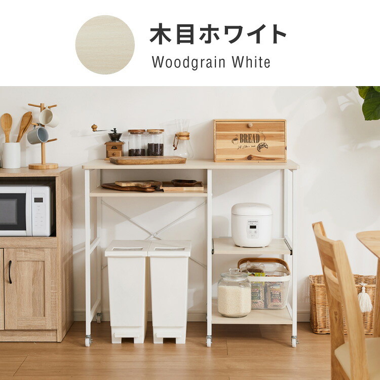 ワイドタイプ キャスター付き キッチンカウンター 幅100 VOID STACK series 大型レンジ対応 木目ホワイト