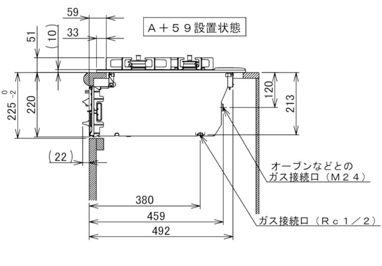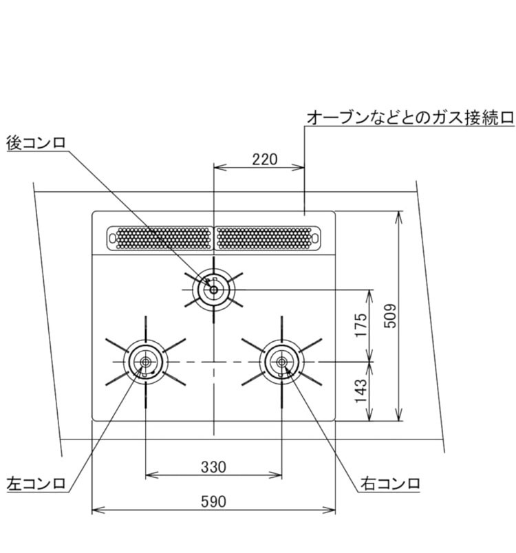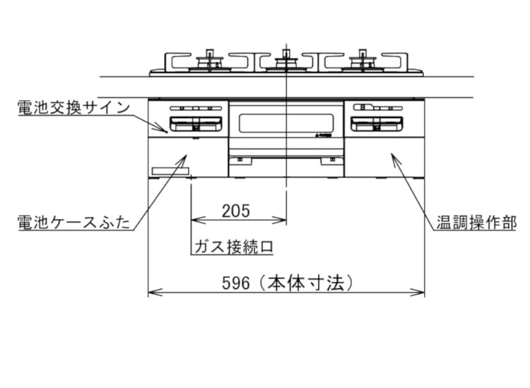 | サイズ/寸法 | *外形寸法:高さ271×幅596(トッププレート部590)×奥行492 *グリル有効寸法:高さ62×幅219×奥行320.5 |