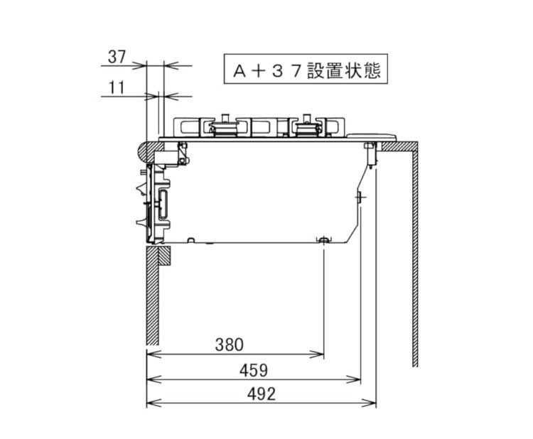 *外形寸法:高さ271×幅596(トッププレート部590)×奥行492