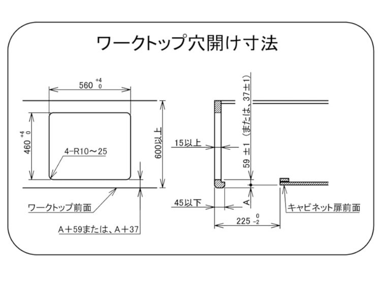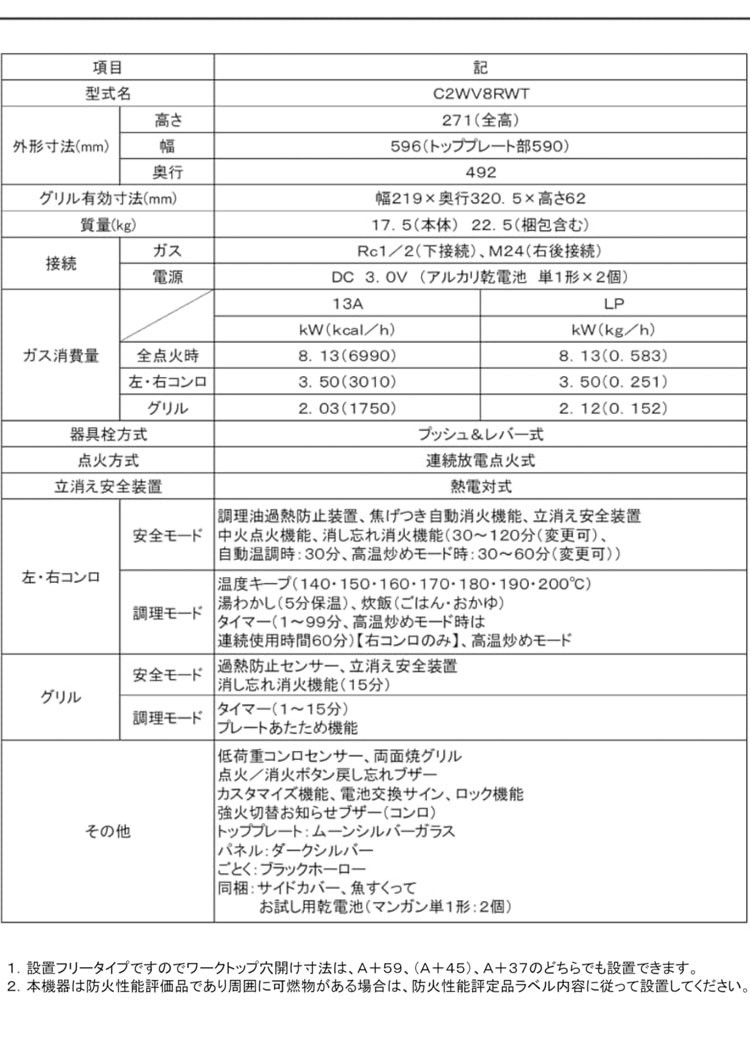 | サイズ/寸法 | 高さ271mm×幅596mm×奥行492mm(トッププレート幅590mm) |