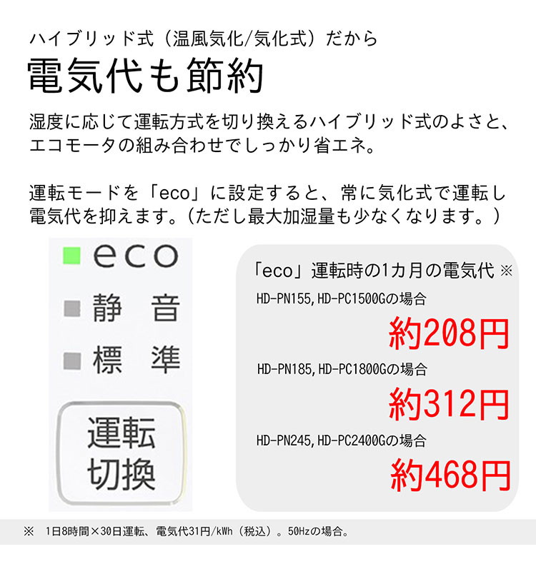 ●加湿量(最大) mL/h:標準2400/静音1600/eco1700/のど・肌加湿2400