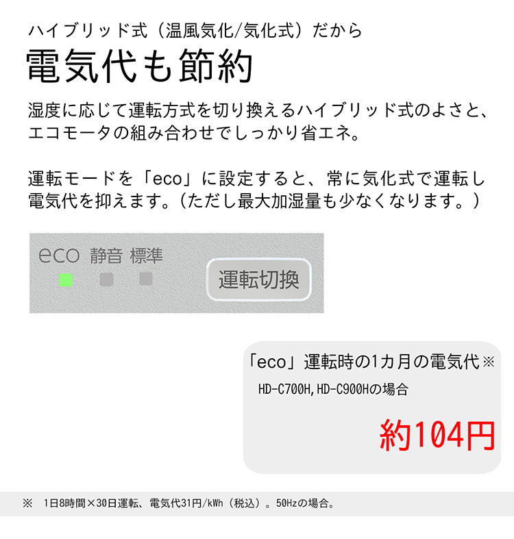 ●連続加湿時間 (h):標準8/静音10.7/eco11