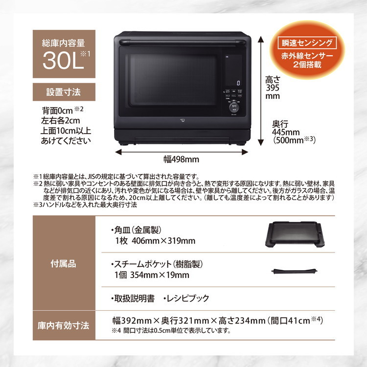 オーブンレンジ 象印 象印マホービン EVERINO ES-LA30(BA) 30L ブラック スチームオーブンレンジ レンジ ZOJIRUSHI エブリノ
