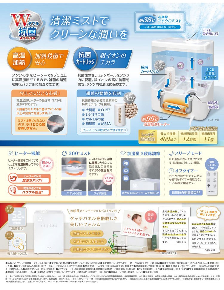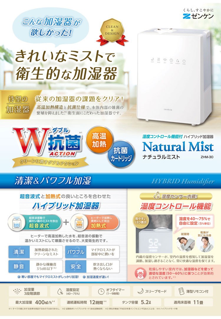 ゼンケン ハイブリッド加湿器 ナチュラルミスト ZHM-30 加湿器 ハイブリッド式 加熱式 超音波式