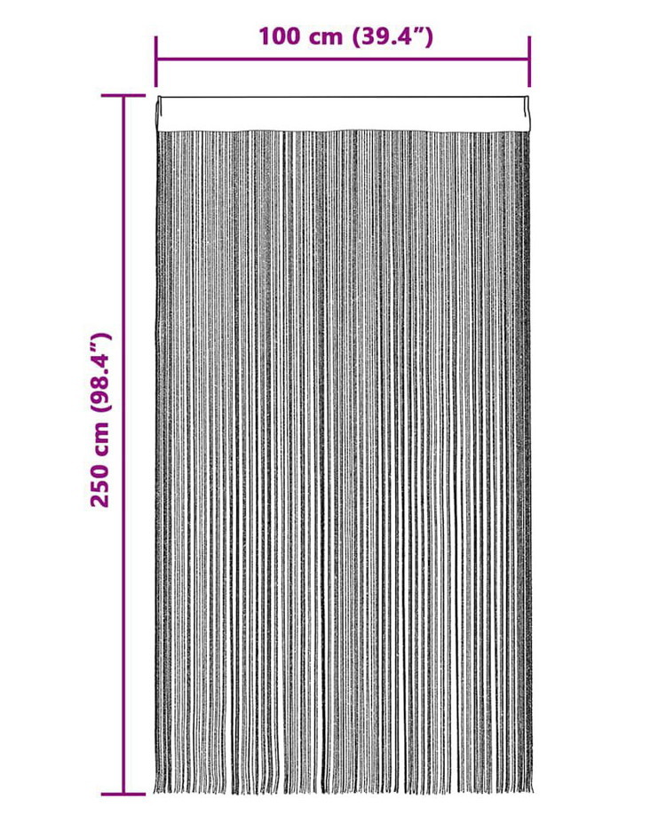 vidaXL ストリングカーテン 2点 100x250cm ブラックホーム&ガーデンデコレーション窓用品カーテン・ドレープ