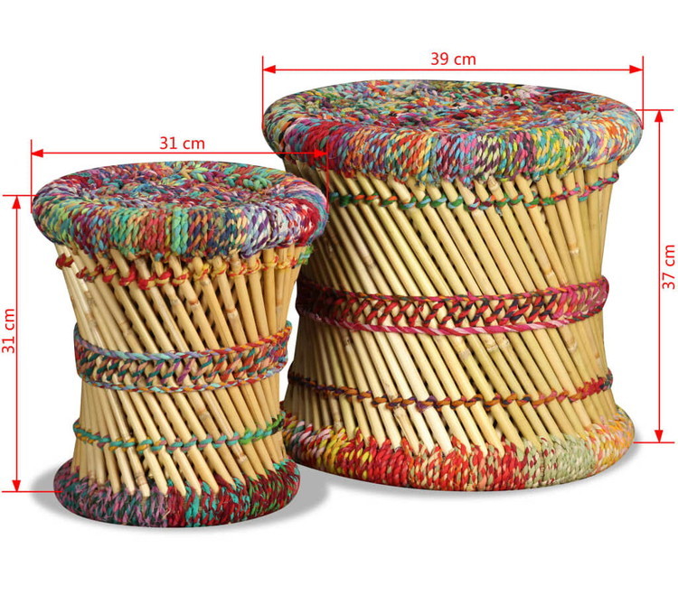 vidaXL スツール 2点 チンディディテール付き 竹製 マルチカラー 家具 チェア 折り畳み椅子 スツール