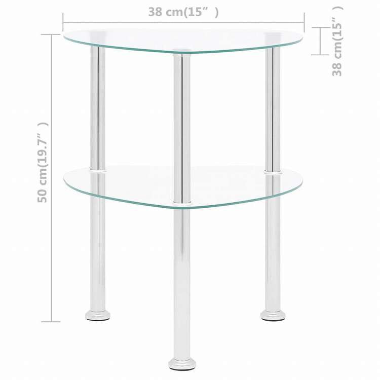 vidaXL 2段 サイドテーブル 透明 38x38x50cm 強化ガラス製家具 テーブル アクセントテーブル