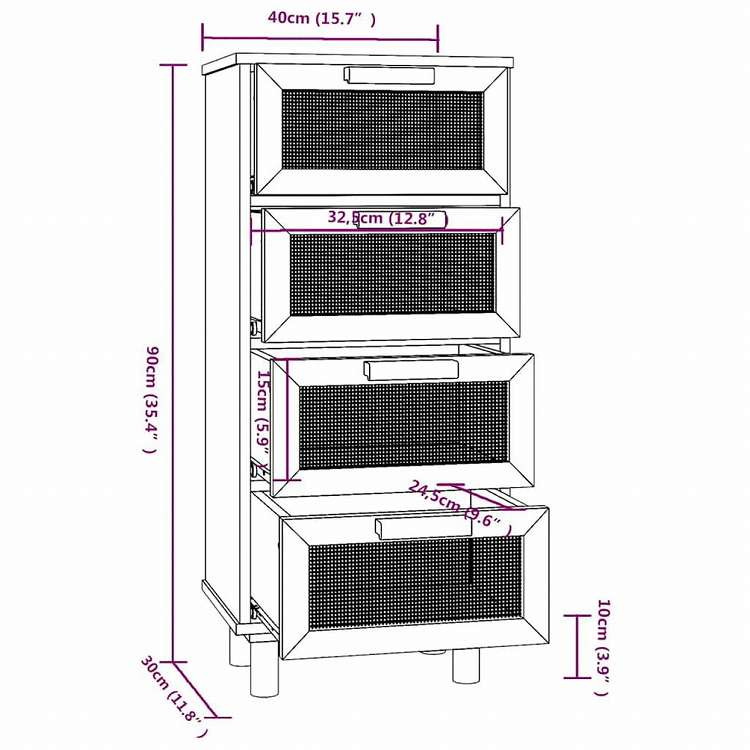 ■豊富な収納スペース:引き出し4点を備えたこのキャビネットには、十分な収納スペースがあり、さまざまな日用品を手の届くところに整理しておくことができます。また、引き出しの天然ラタン織りのデザインが美しさを増しています。