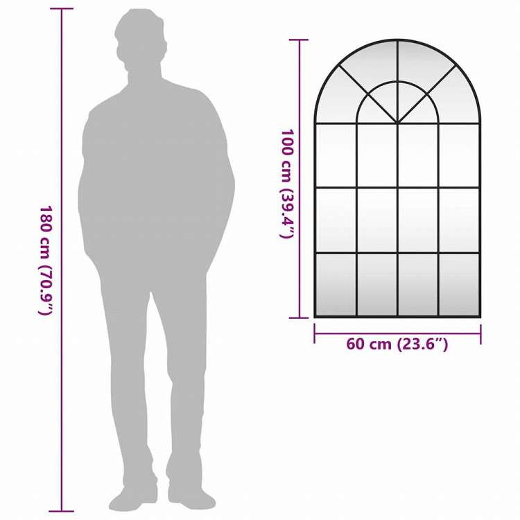 vidaXL ウォールミラー ブラック 60x100 cm アーチアイロンホーム&ガーデン デコレーション
