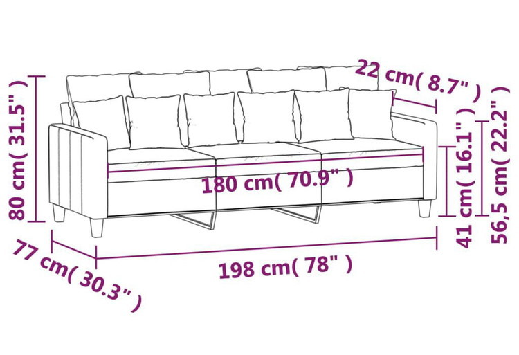 この3人掛けソファは、おしゃべり、読書、テレビ鑑賞するのに理想的な場所です。くつろいで、快適さを存分に満喫しましょう。耐久性のあるファブリック:シンプルでクリーンな印象のファブリックが特徴で、通気性がよく、長持ちします。頑丈で安定したフレーム:この布張りソファの金属フレームは、頑丈さと安定性を保証します。快適な座り心地:厚いパッド入りのシート、アームレスト、背もたれのピローで、快適な座り心地を実現。目を引くデザイン:シンプルでモダンなデザインが特徴で、お部屋の中で目を引く存在になること間違いありません。