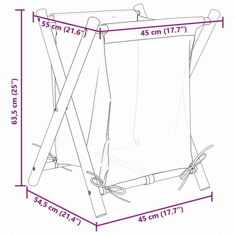 vidaXL ランドリーバスケット クリームホワイト 45x55x63.5 cm 竹製ホーム&ガーデン 家事用品
