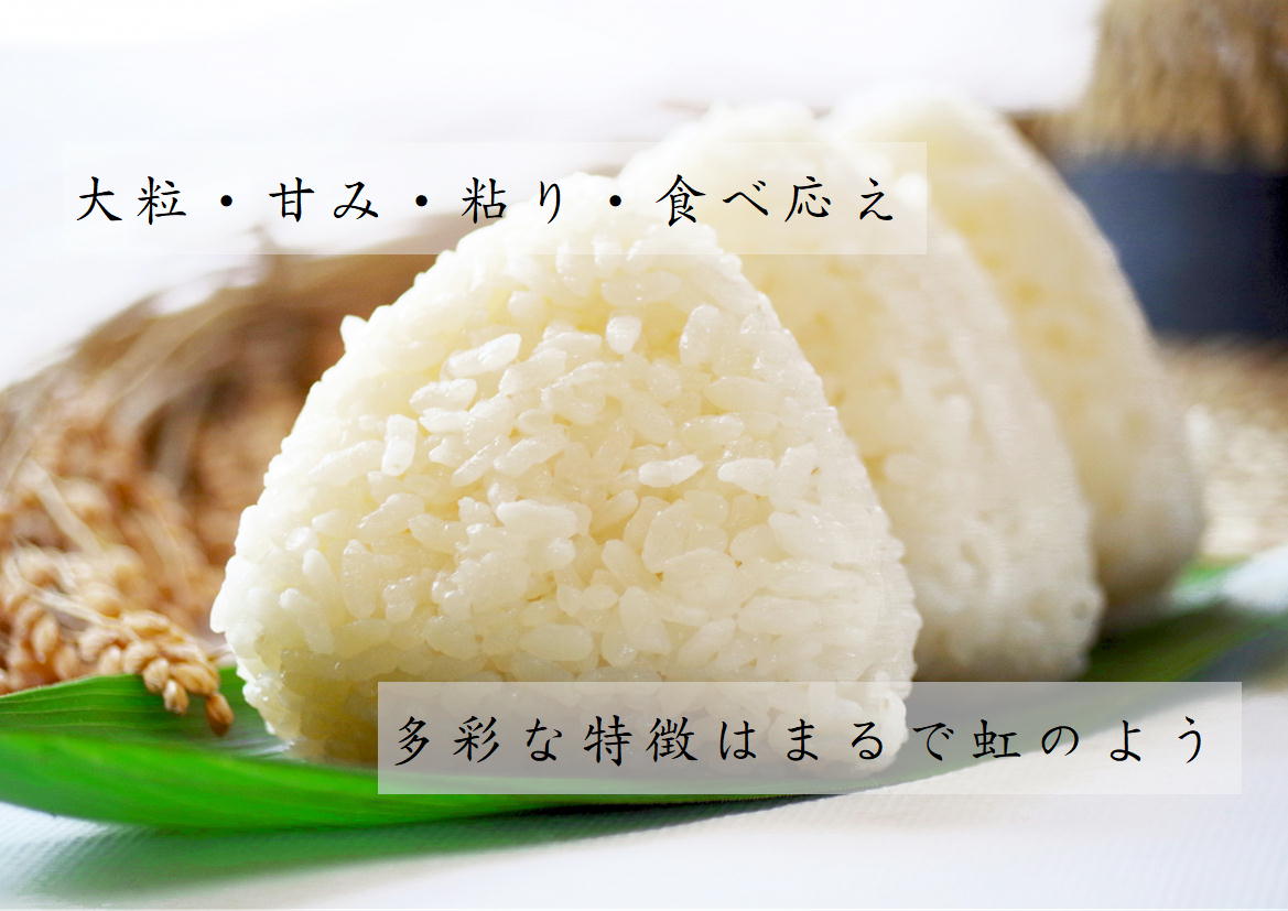 米飯の食味は「コシヒカリ」と同等で、虹のような多彩な特性を持ち、