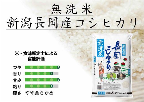 洗わず美味しい。無洗米新潟長岡産コシヒカリ