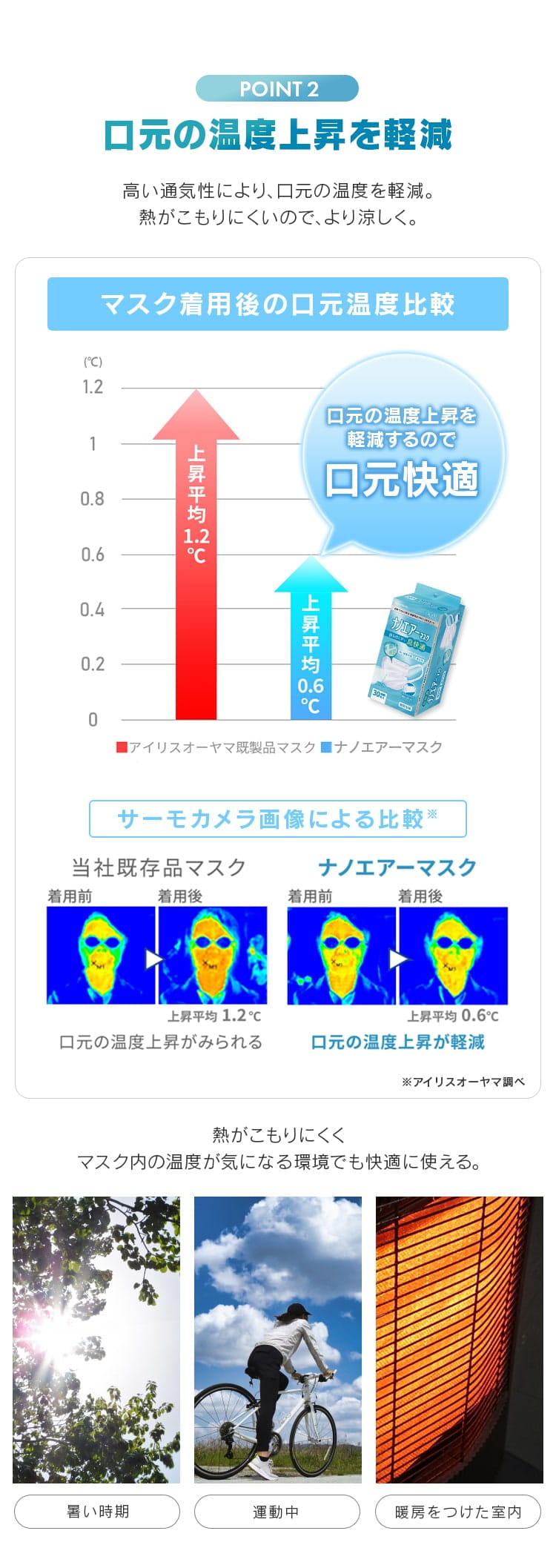 特殊ナノファイバー加工の中間層が着用時の口元温度上昇を緩和し、