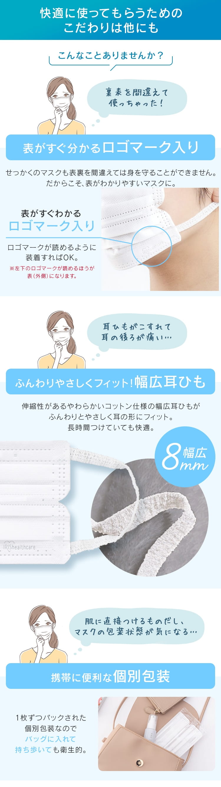 ふんわりとやわらかく幅の広い耳ひもを採用することで、