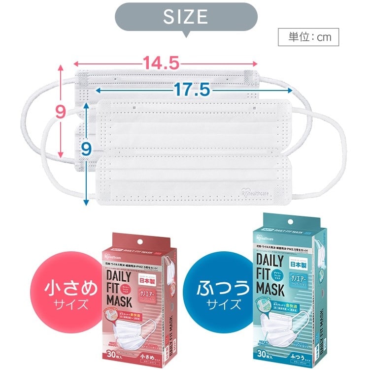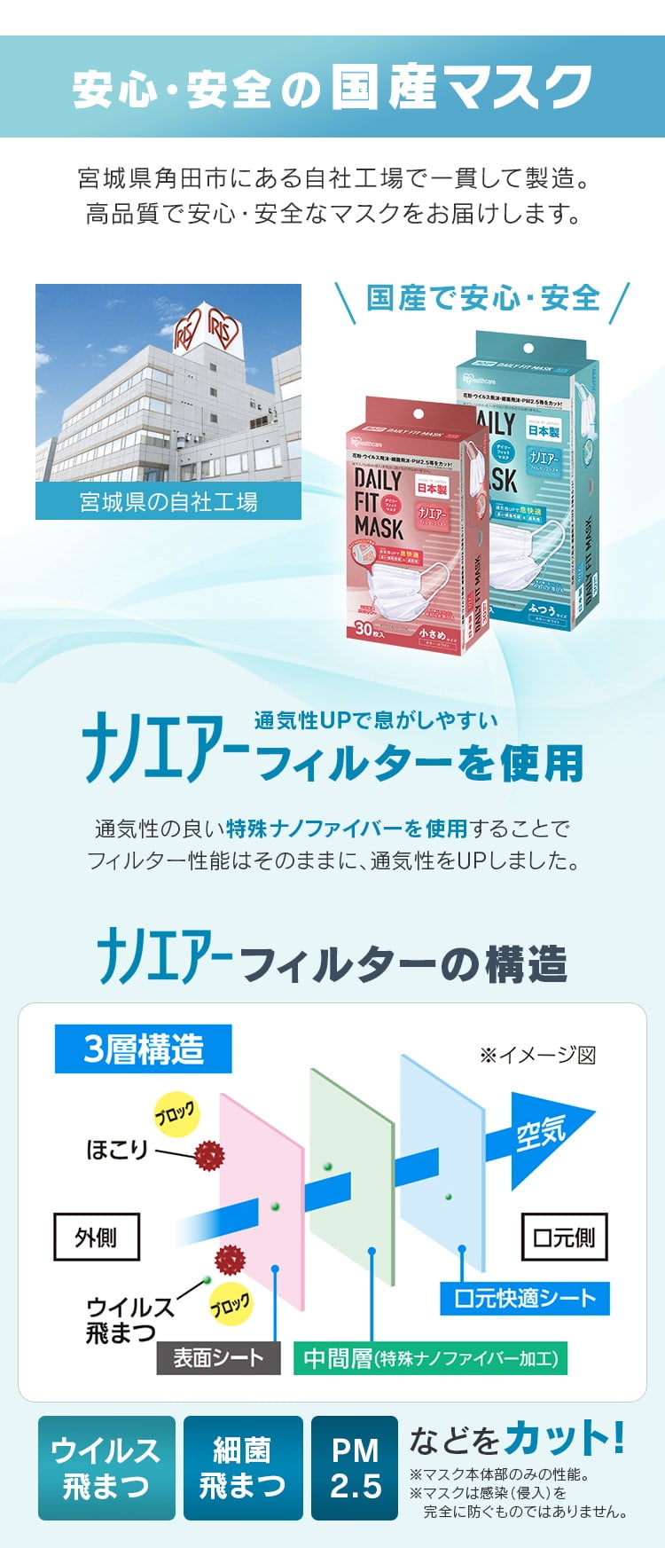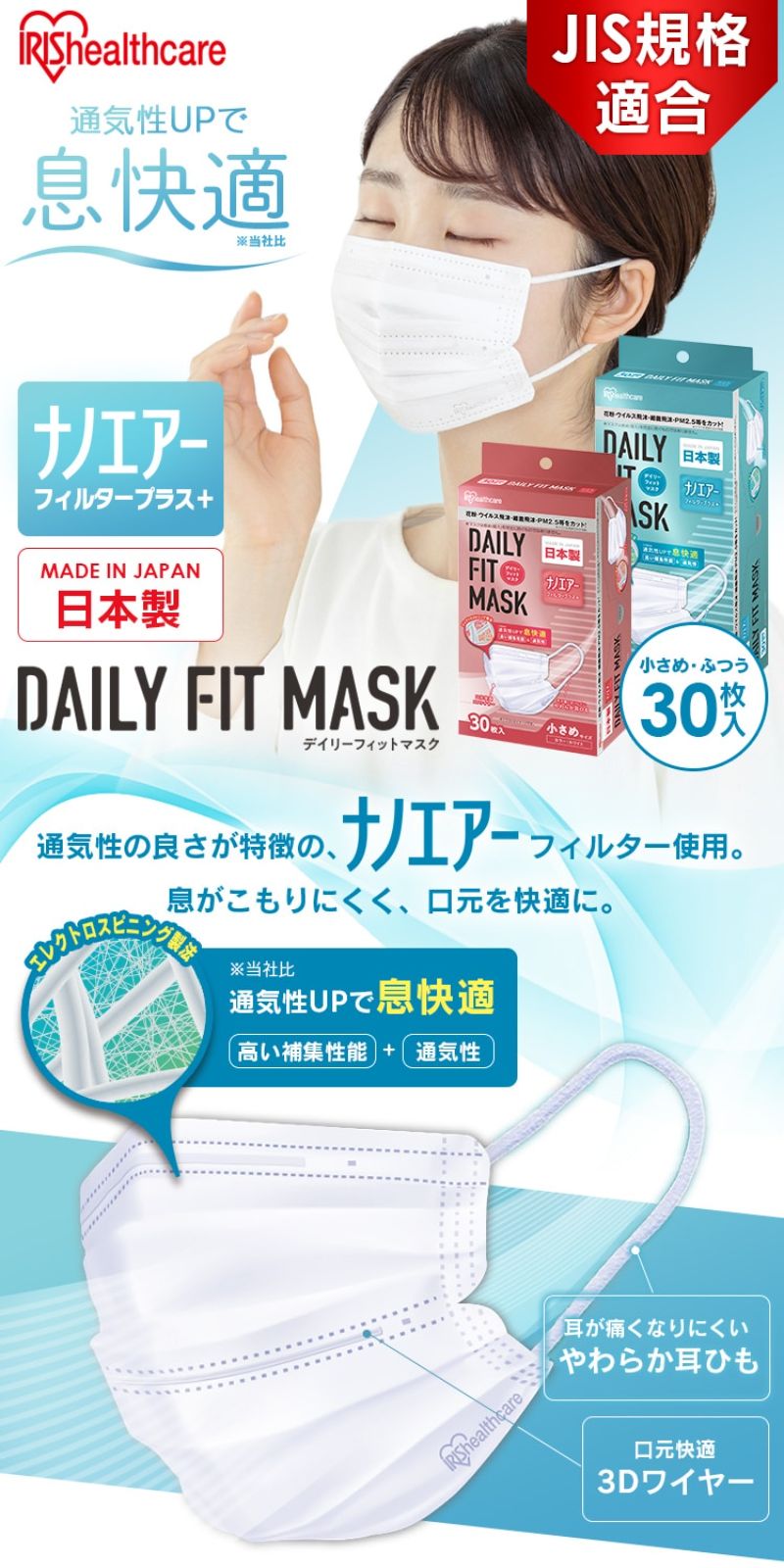 アイリスオーヤマ デイリーフィットマスク ナノエアーフィルタープラス 小さめサイズ 30枚入 PN-DNI30S ホワイト