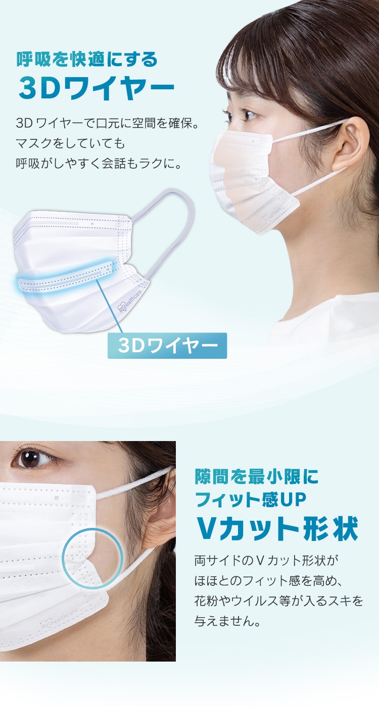 | 原材料/素材/材質 | ●素材: [本体・フィルター]ポリプロピレン、ポリフッ化ビニリデン [耳ひも]ポリエステル、ポリウレタン [ノーズフィッター、3Dワイヤー]ポリエチレン |