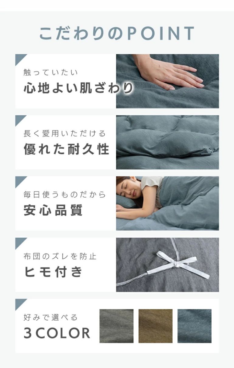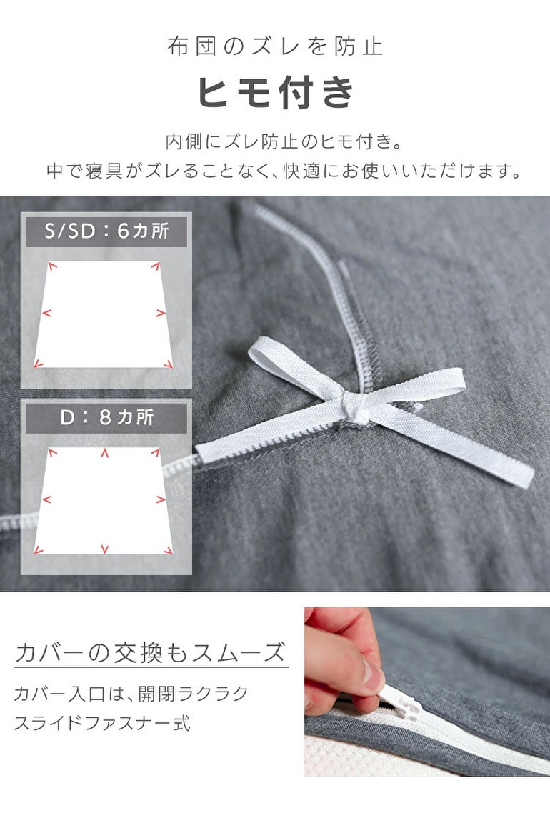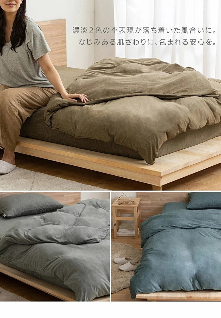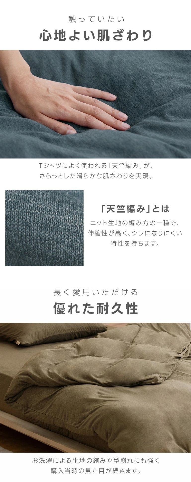 天竺ニット生地を使用している掛け布団カバー。柔らかく肌なじみのよい質感です。