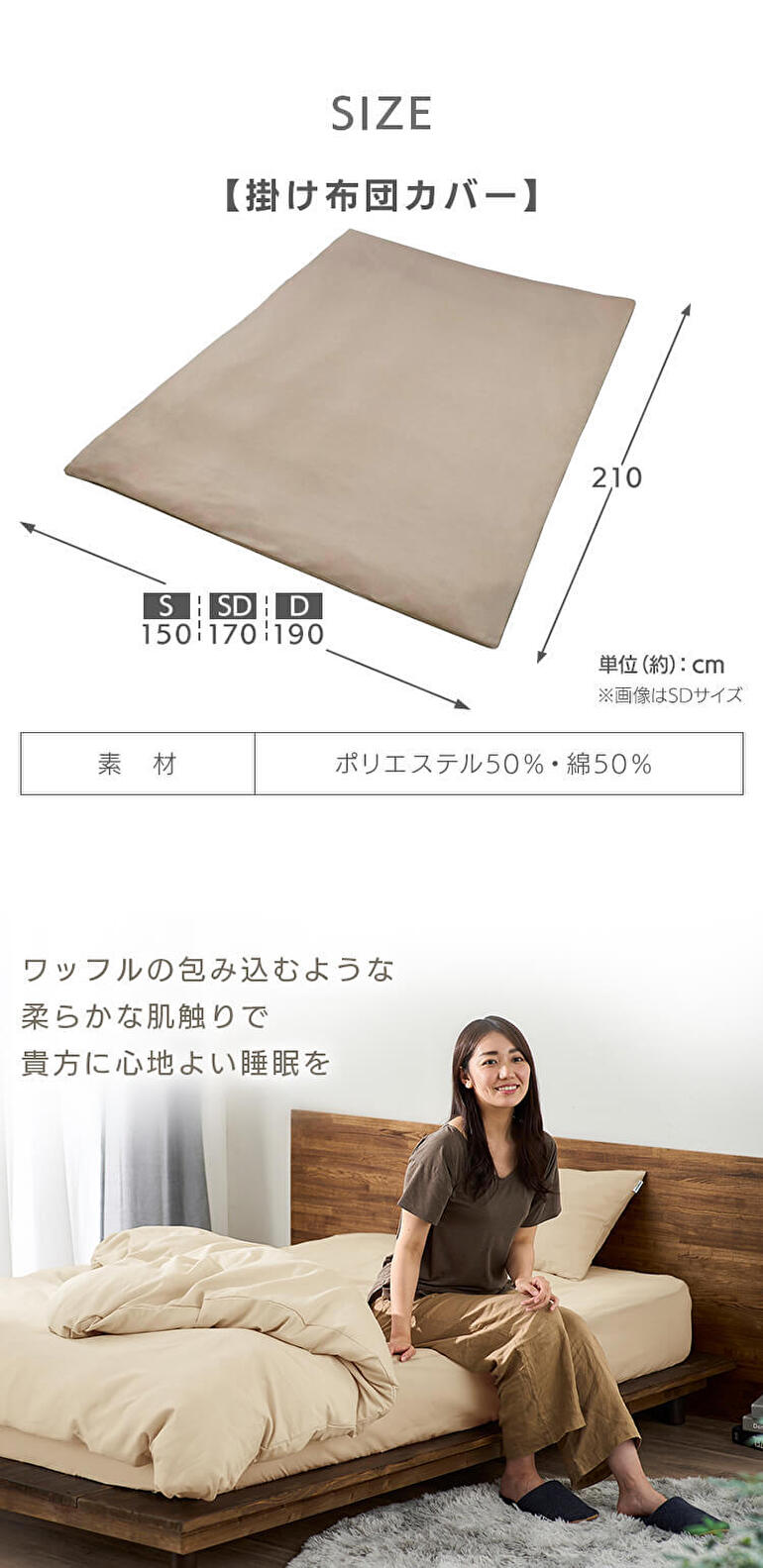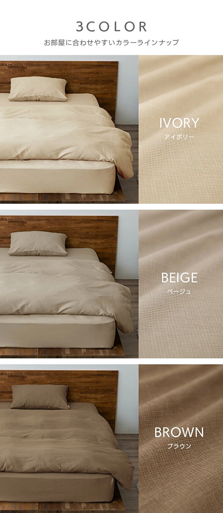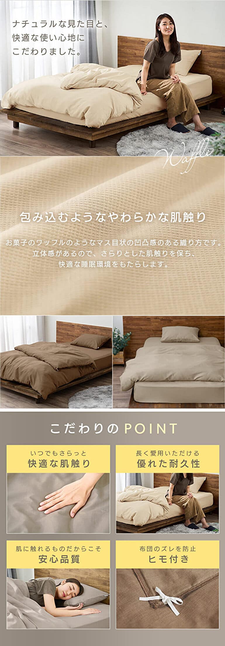 ワッフル生地を使用している掛け布団カバー。凸凹感があり、さらりとした風合いです。