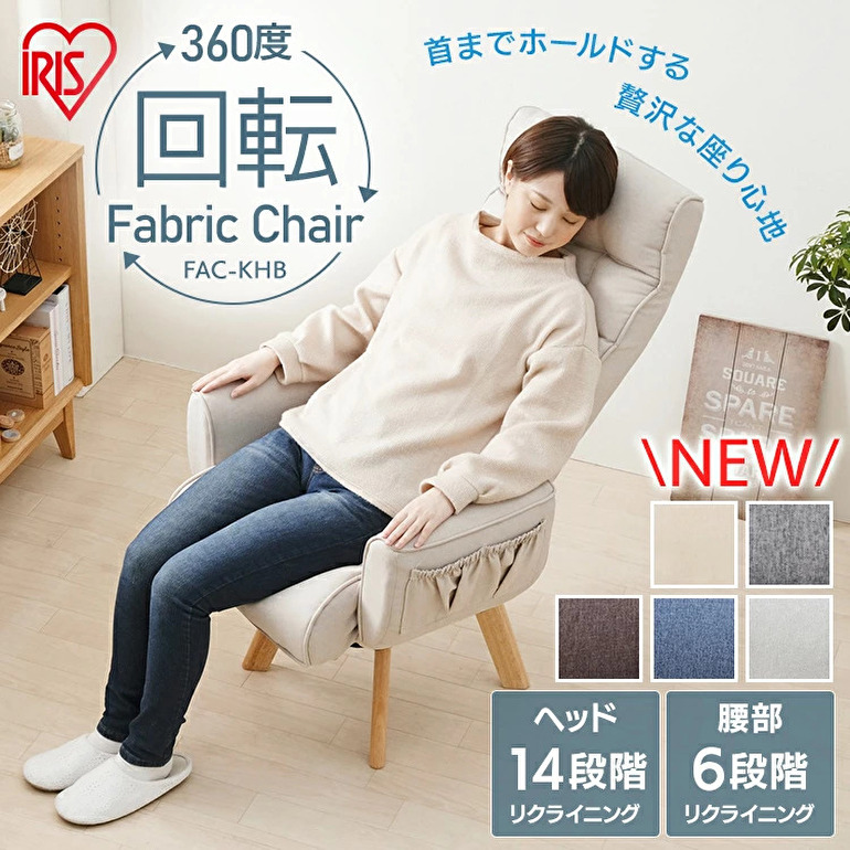 アイリスオーヤマ 回転ファブリックチェア ハイバック FACN-KHB アッシュ