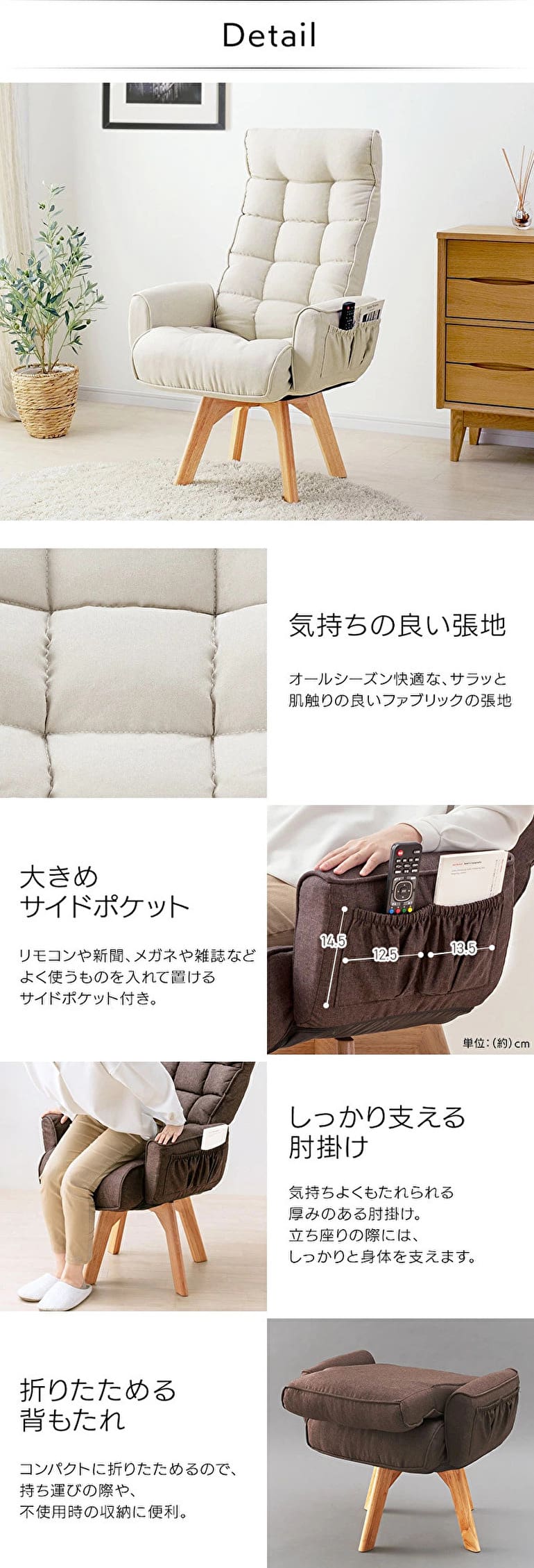 | サイズ/寸法 | 商品サイズ(cm): [使用時]幅約65×奥行約62~88×高さ約101~109 [折りたたみ時]幅約65×奥行約64×高さ約60 [座面高さ]約45 |