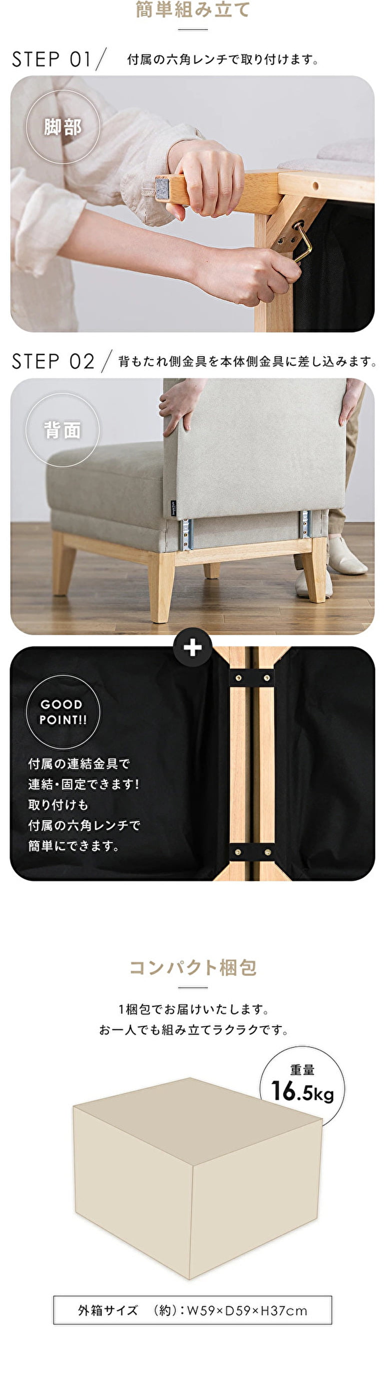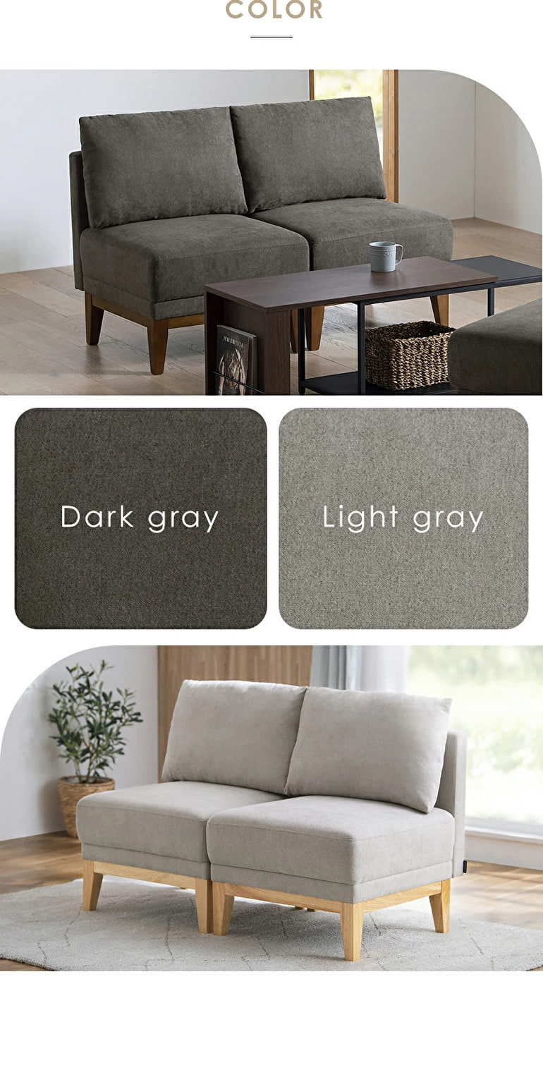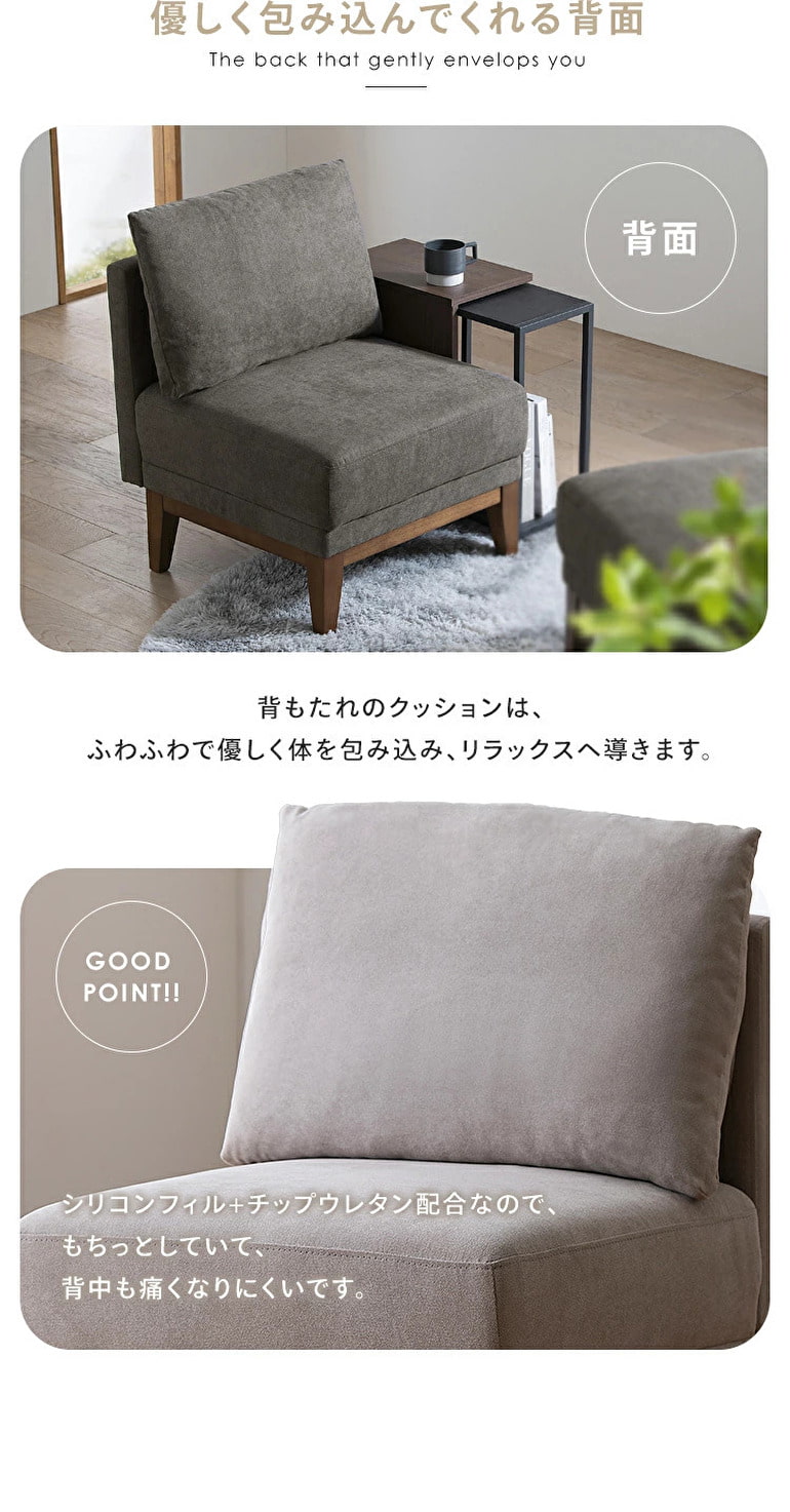生活やお部屋の間取り、お好みのスタイルに合わせて組み合わせできるユニットソファ。1人掛けソファはもちろん、組み合わせて2人掛けソファ、オットマンとの併用も可能です。