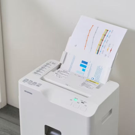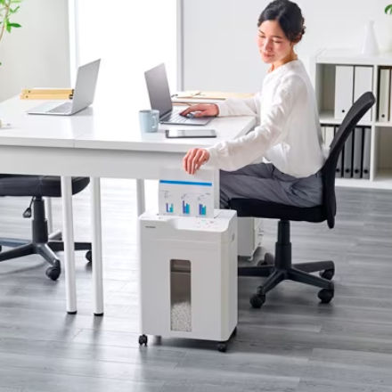 フタを開けて紙を投入口にセットするだけで自動で細断、書類処理にかかる時間を短縮します。