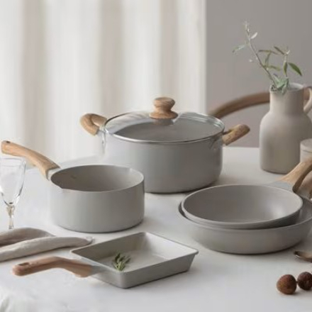 | 原材料/素材/材質 | 主要素材: 【なべ】 [表面加工] 内側:ふっ素樹脂塗膜加工 外側:焼付け塗装(底面を除く) [材質] 本体:アルミニウム合金 ハンドル:アルミニウム合金、フェノール樹脂(耐熱温度140℃) はり底:ステンレス鋼(クロム16%) [底の厚さ]2.6mm(はり底含む) 【ガラスふた】 [品名]強化ガラス製器具 [強化の種類]全面物理強化 [金属部]ステンレス鋼(クロム16%) [樹脂部]フェノール樹脂 |