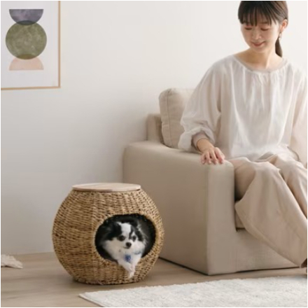 アイリスオーヤマ ラタン調ペットハウス ボール PHR-B4035 ナチュラル
