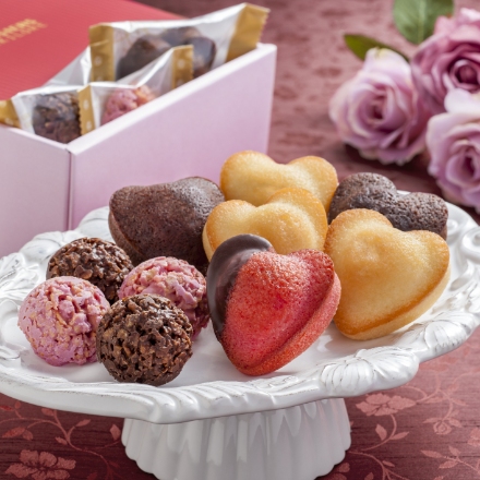 | 内容量 | チョコ掛けハートフィナンシェ×1、ハートフィナンシェ(ショコラ・プレーン×各3)、クランチチョコレート(ミルク・ストロベリー×各3)(計13) |