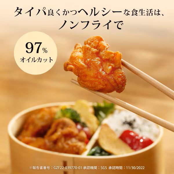 油を使わず食材自体の脂で調理するので、油で揚げるより最大約97%オイルをカットし、よりヘルシーに調理していただけますし、油のコストも節約できます。