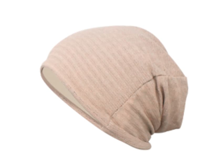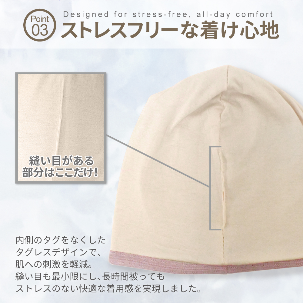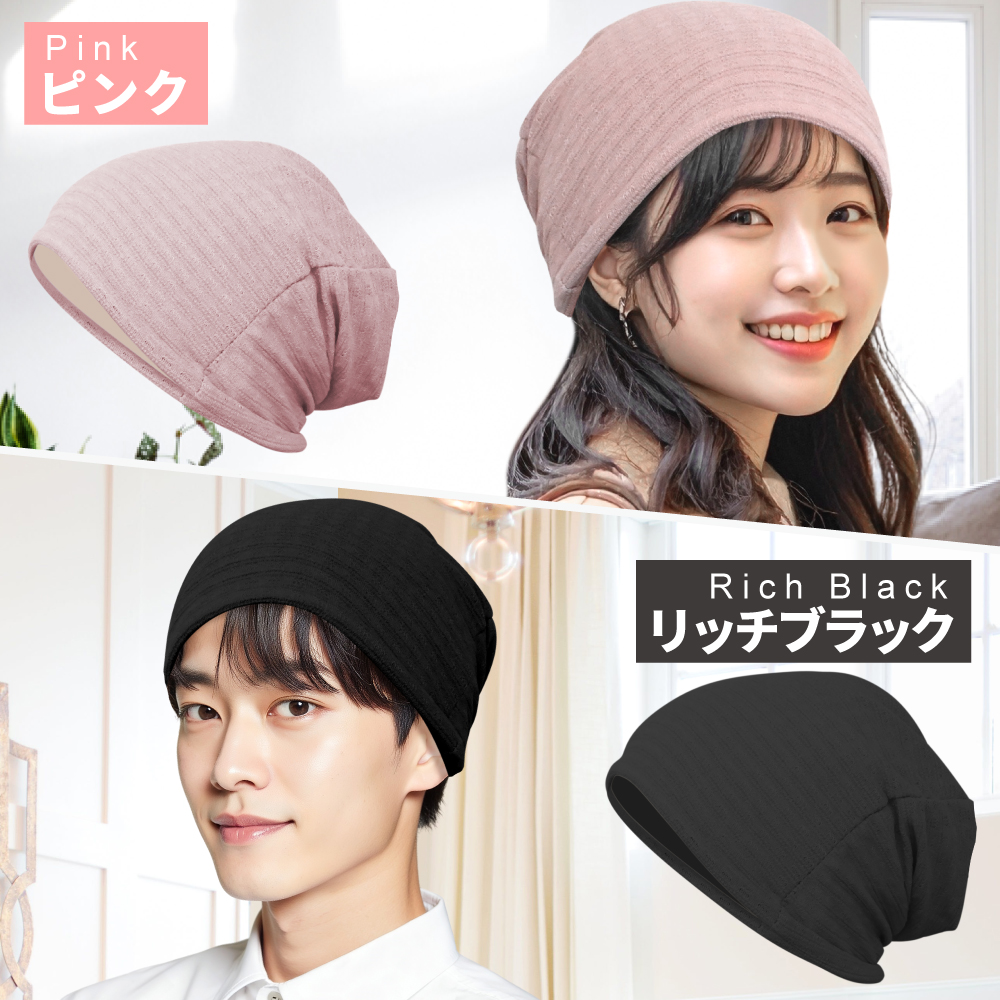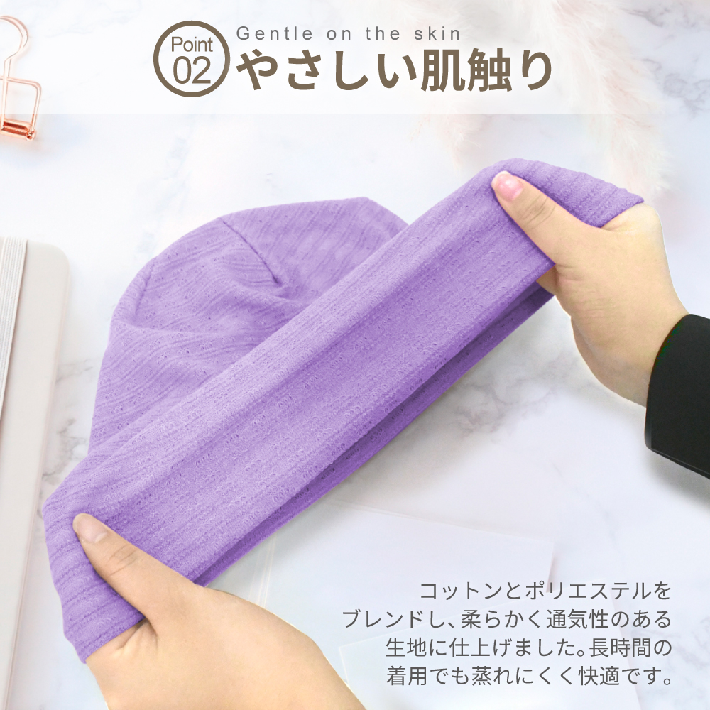 = 伸縮性のあるリブ編みが頭にやさしく沿い、長時間でも快適です