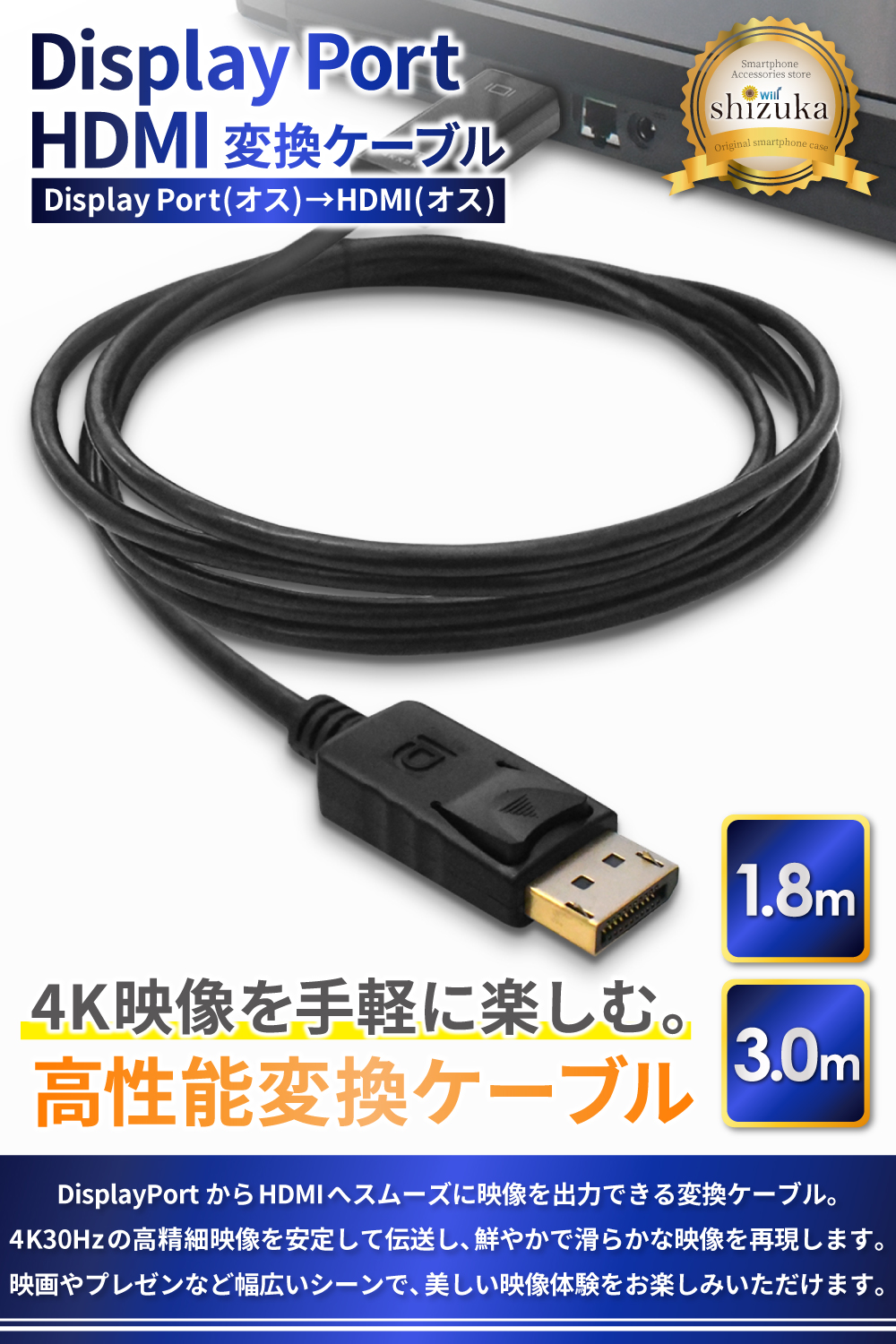 シズカウィル ケーブル DPtoHDMI 02 4K30Hz ブラック 1.8m 1個入り