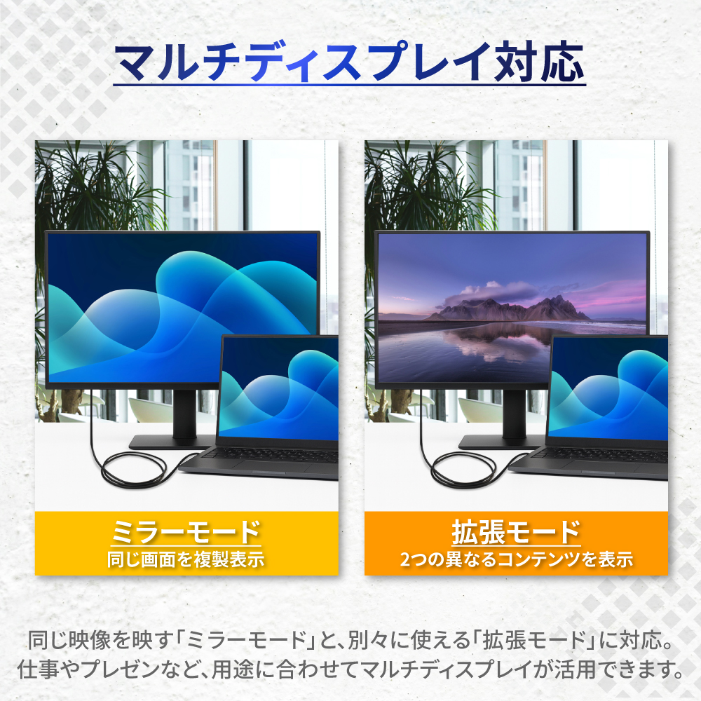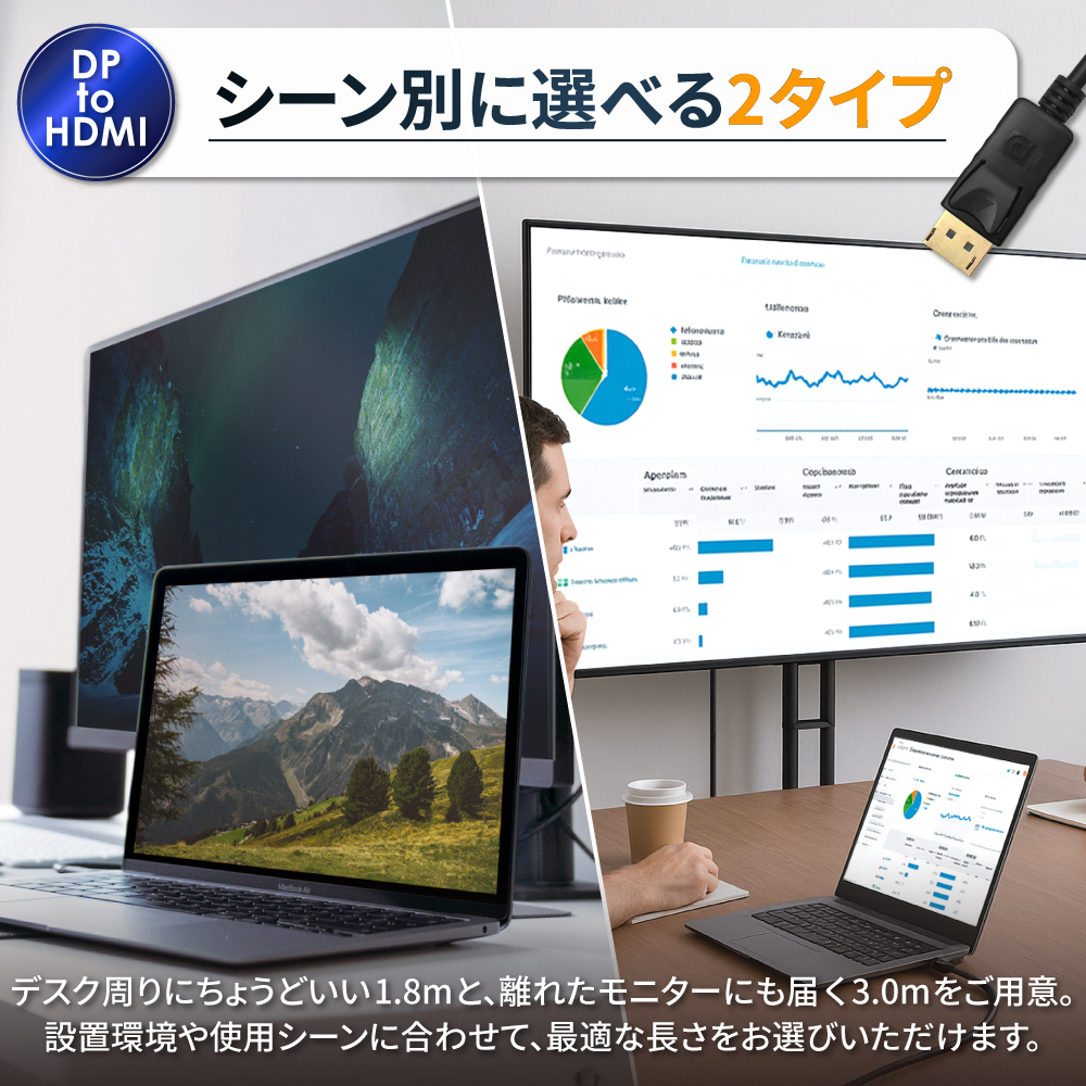 = デスク周りに最適な1.8m、離れたモニターに届く3.0mをご用意