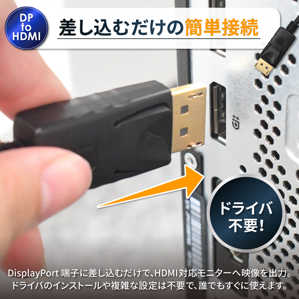 = PCのDisplayPort映像をHDMI対応モニターへ簡単に出力可能