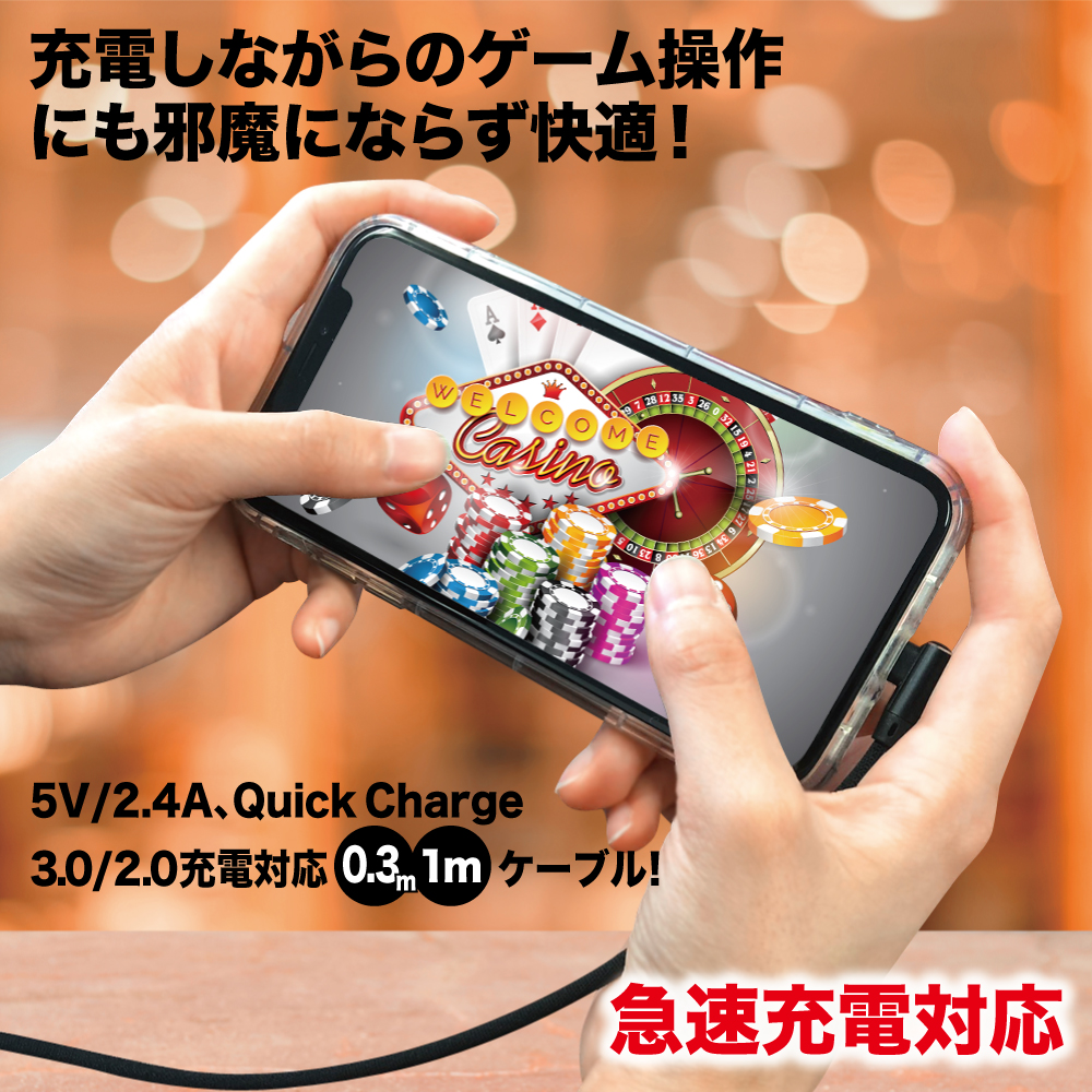 ▼仕様:急速充電(Quickcharge3.0/2.0対応) L字型コネクタ データ転送