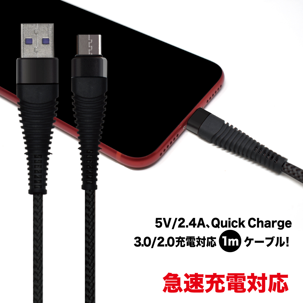 Type-C to USB2.0 充電ケーブル Android 急速充電 データ転送 ストロング タイプCケーブル shizukawill シズカウィル Type-C⇔USB2.0 ブラック