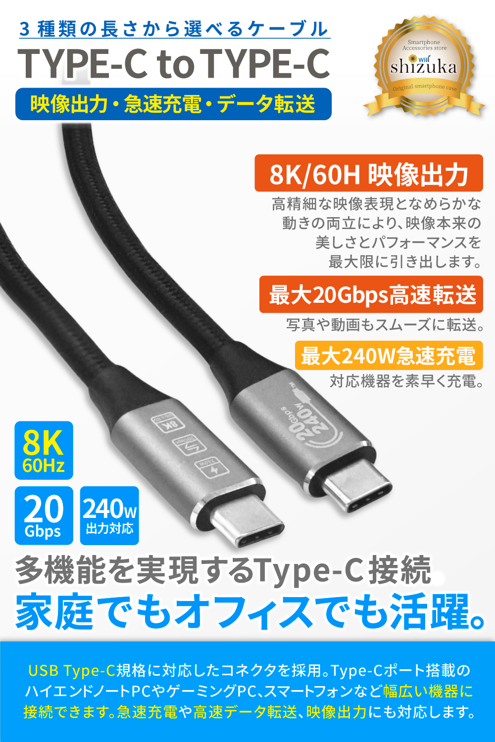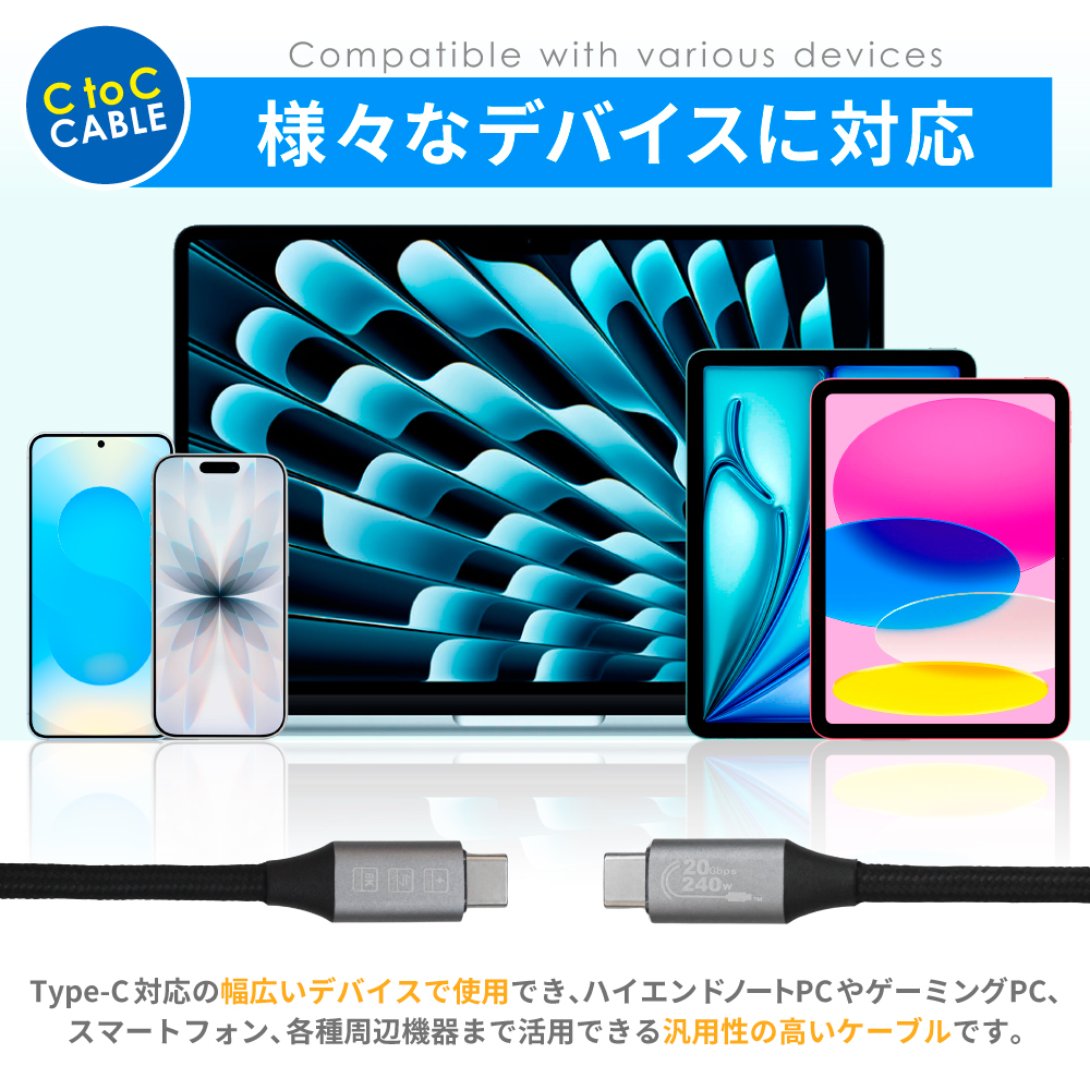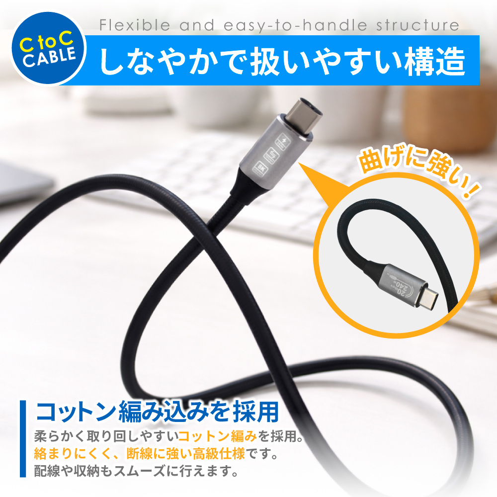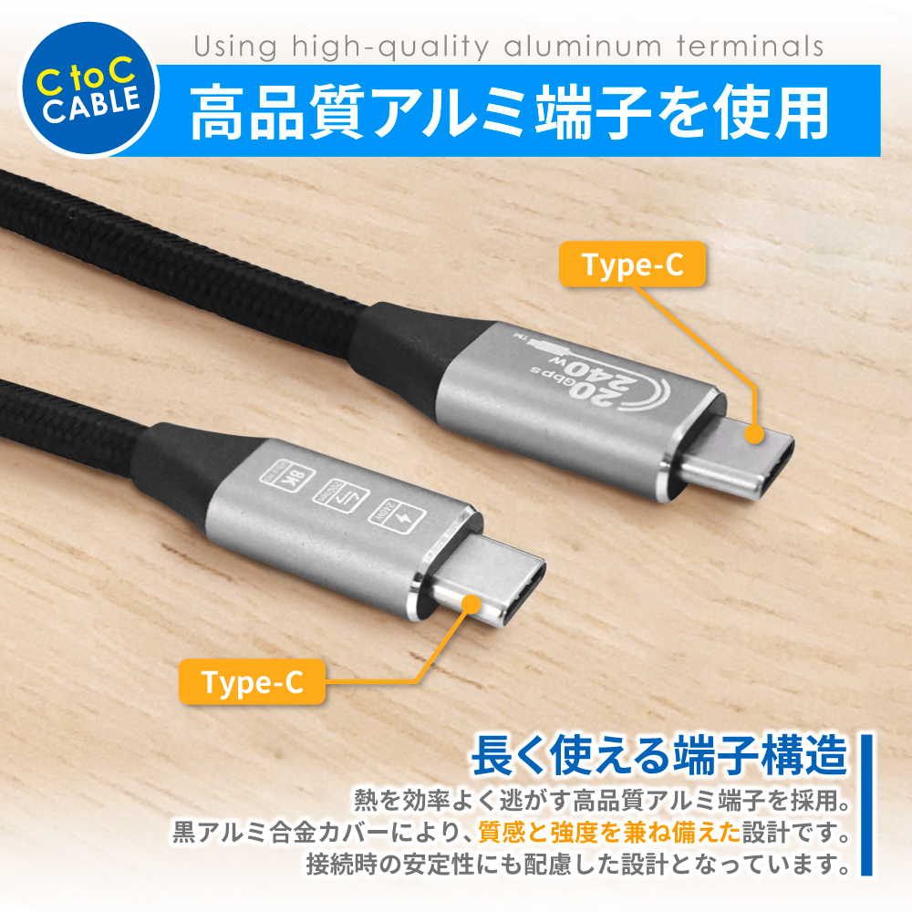 ハイエンド機器にも対応する高性能Type-Cケーブルです。