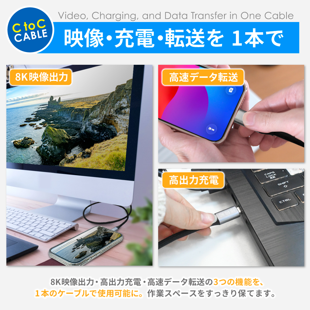 映像出力・充電・データ転送を1本で対応。