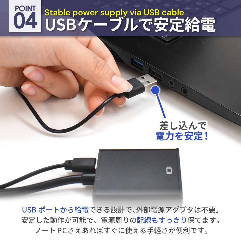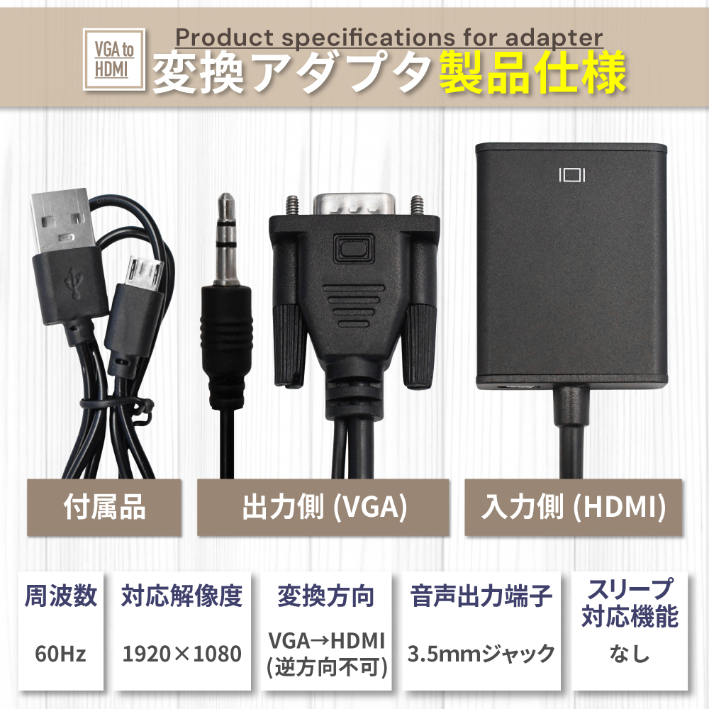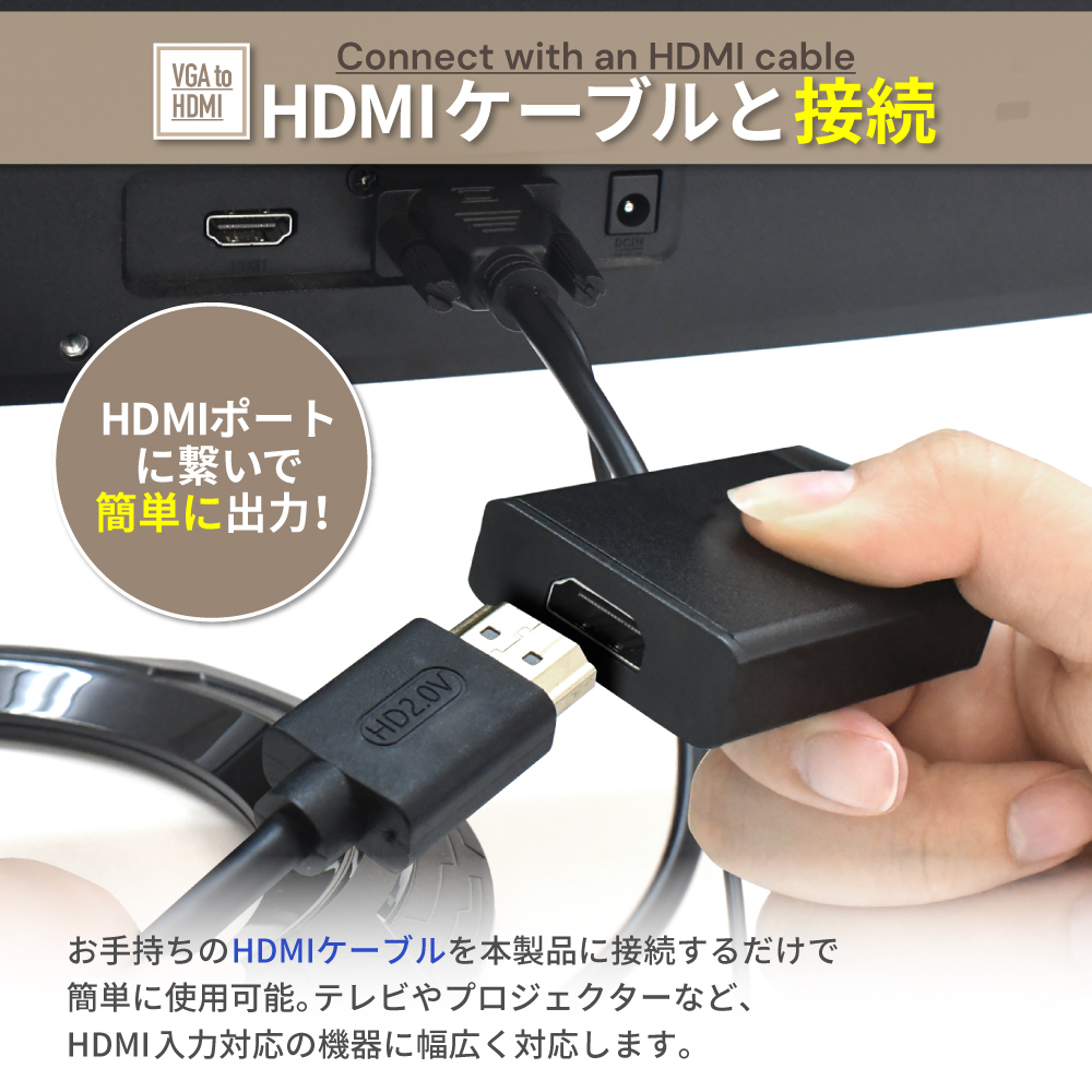 ※本製品はVGA→HDMI方向の変換のみに対応しています。