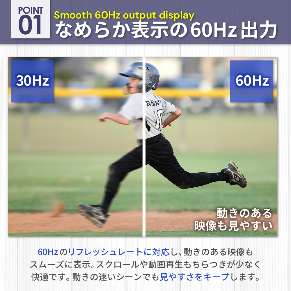 = リフレッシュレート60Hz対応、動画などもスムーズに表示