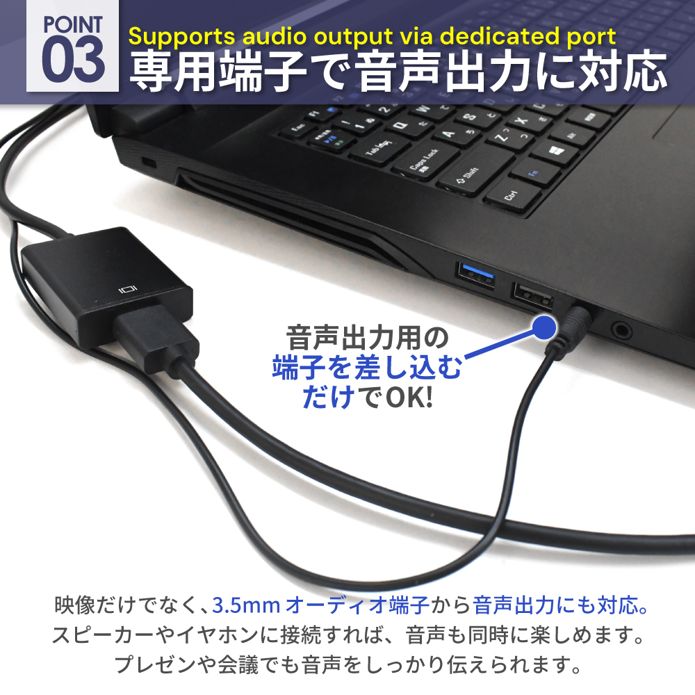 = 3.5mmオーディオ端子からスピーカー等への音声出力機能付き
